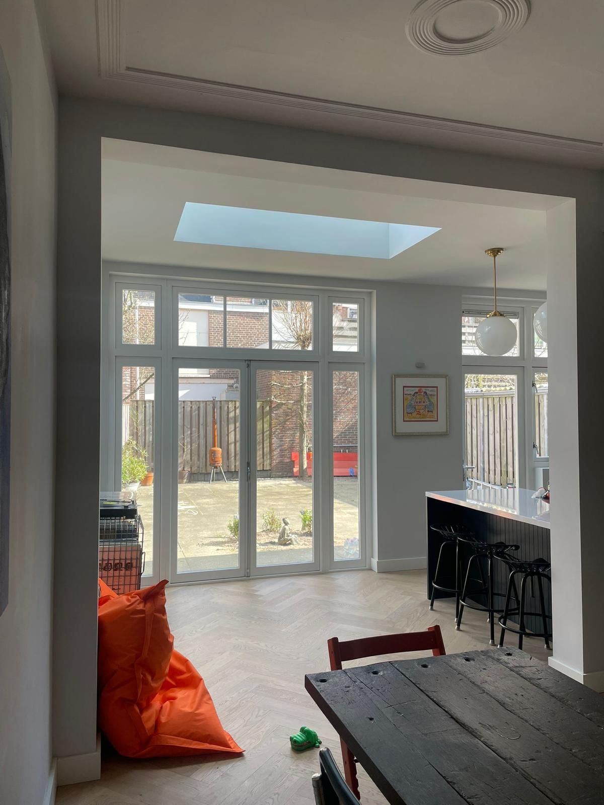 Deze stijlvolle uitbouw in Den Haag combineert functionaliteit en esthetiek voor een ruime, lichte woonomgeving. Met hoogwaardige materialen en oog voor detail hebben we de achtergevel uitgebouwd, waardoor er een naadloze overgang ontstaat tussen binnen en buiten. De grote raampartijen en dubbele openslaande deuren zorgen voor een maximale lichtinval en een moderne uitstraling.